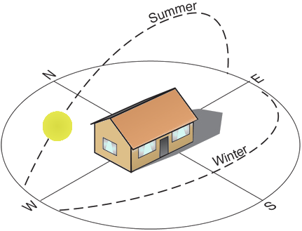 Orientation: Orientation is the relative position of a building to the sun. Building orientation has significant impacts on the building’s energy efficiency, by harnessing the sun for solar gain for heating.