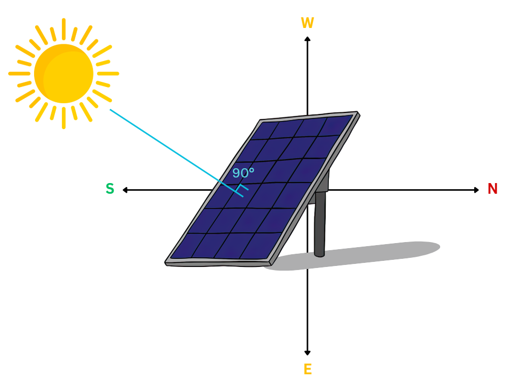 Tilt: The angle of the solar panels, calculated to reach the ideal angle for maximum insolation absorption and conversion. Dependent on local latitude, seasonal sun angle, calculations to reach angle of incidence.